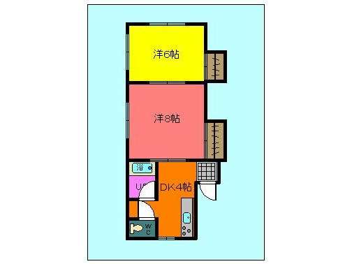 | 詳細間取 | 2DK (洋6帖×1、洋8帖×1、DK3帖) | ||